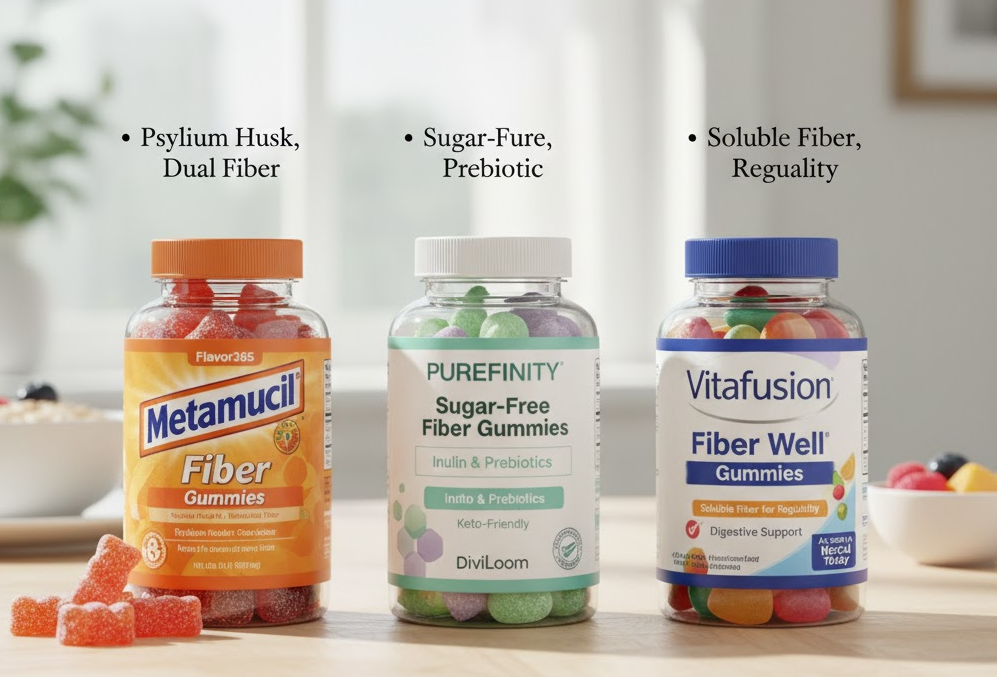 - (If available) Vitafusion Fiber Gummies — Contain soluble fiber to support regularity; mentioned by Medical News Today as an option.