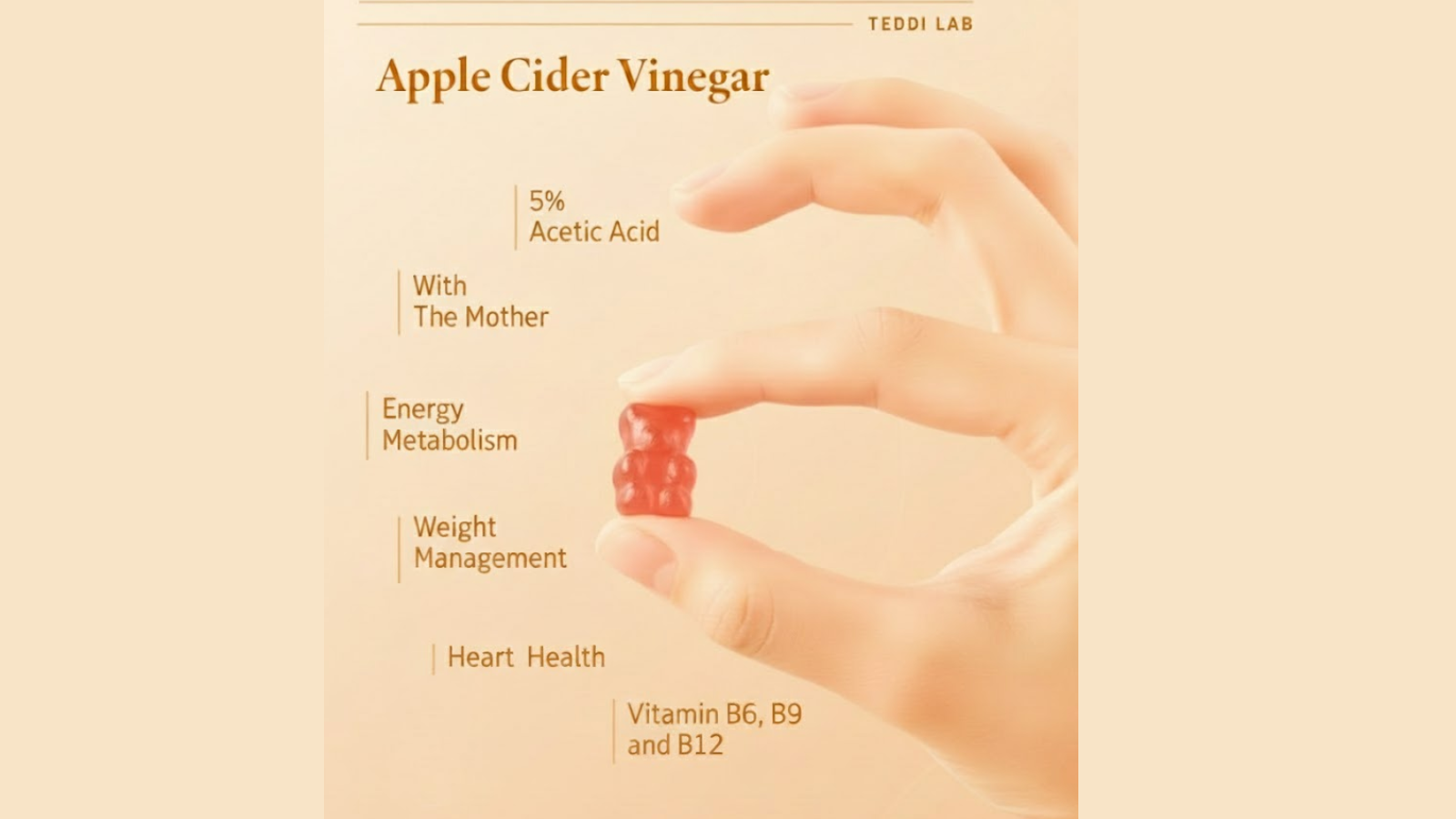 Apple Cider Vinegar gummies deliver the classic health benefits of ACV — better digestion, balanced energy, and healthy metabolism — without the sour taste.